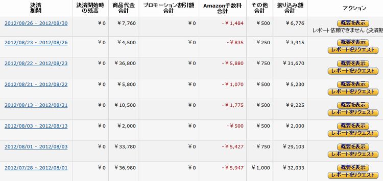 Amazonでの売り上げ実績の一部を切り取りました。